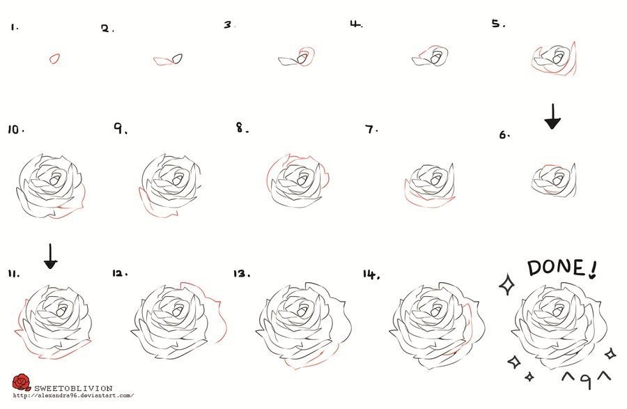 ![Схема рисования розы]()