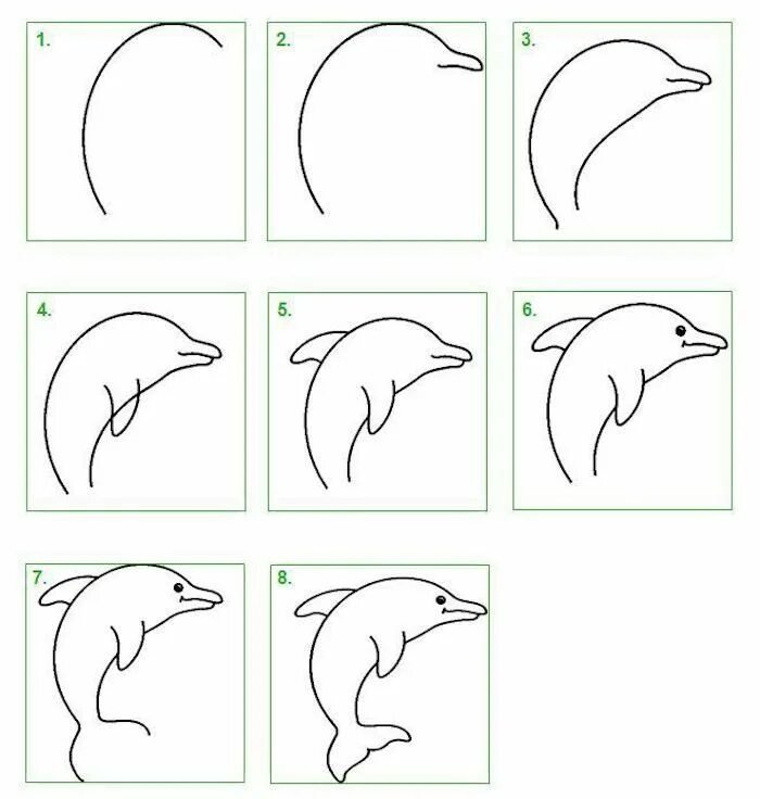 Поэтапное рисование дельфина