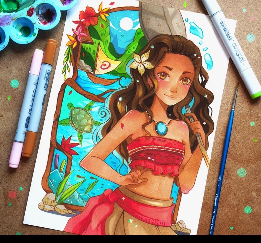 ![Принцессы Дисней маркерами]()