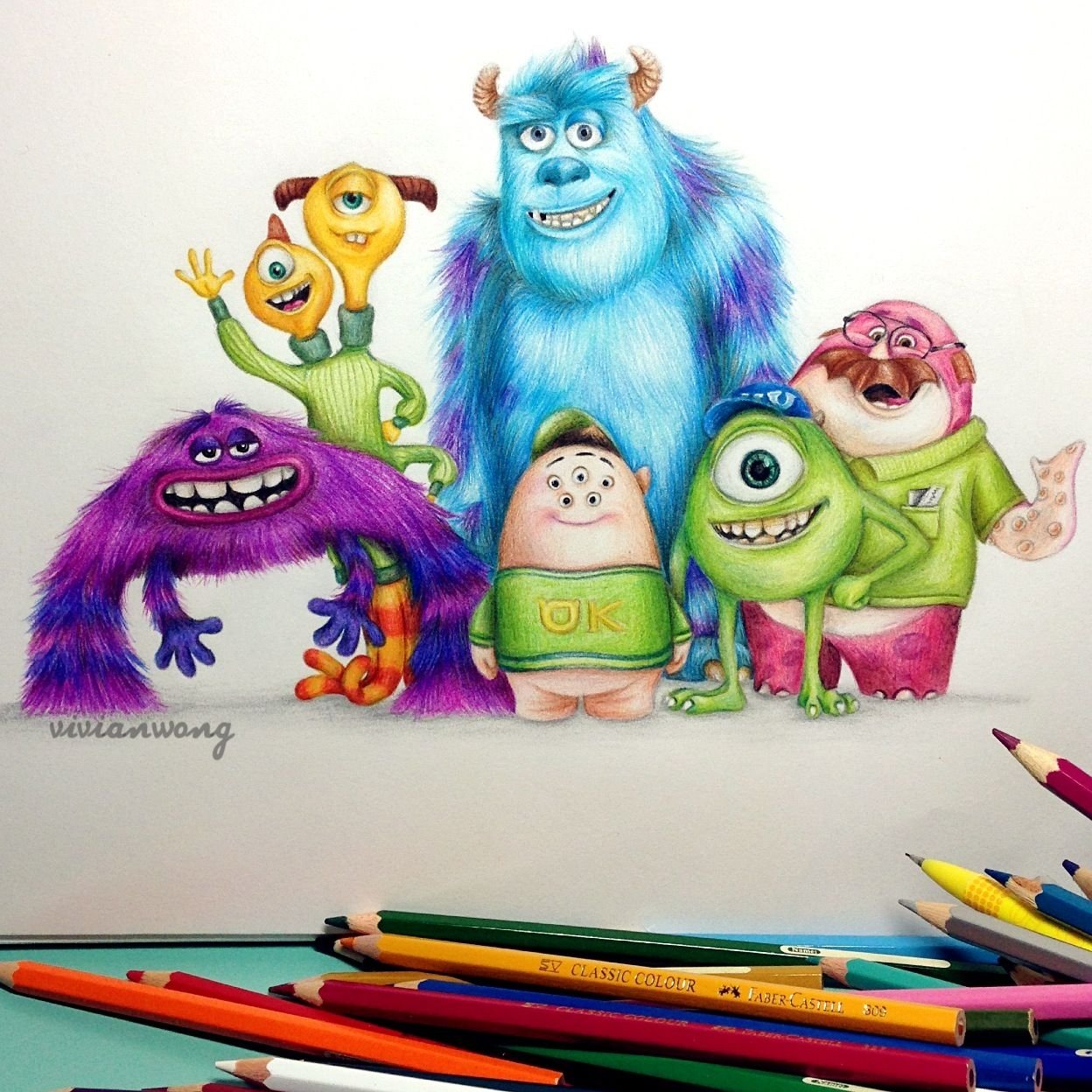 Герои мультфильмов цветными карандашами