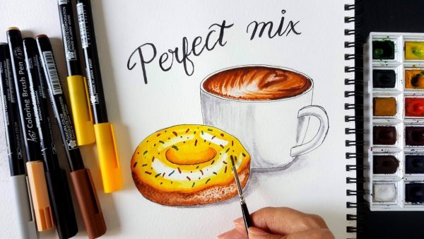 ![Скетчинг маркерами кофе]()