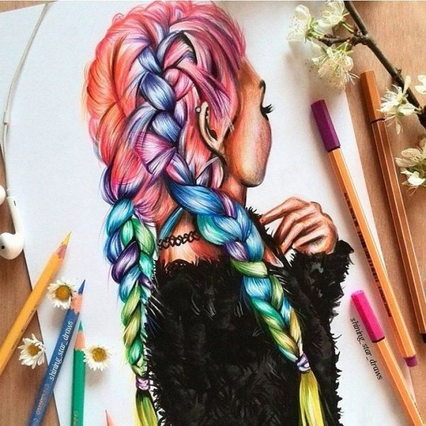 Прически цветными карандашами