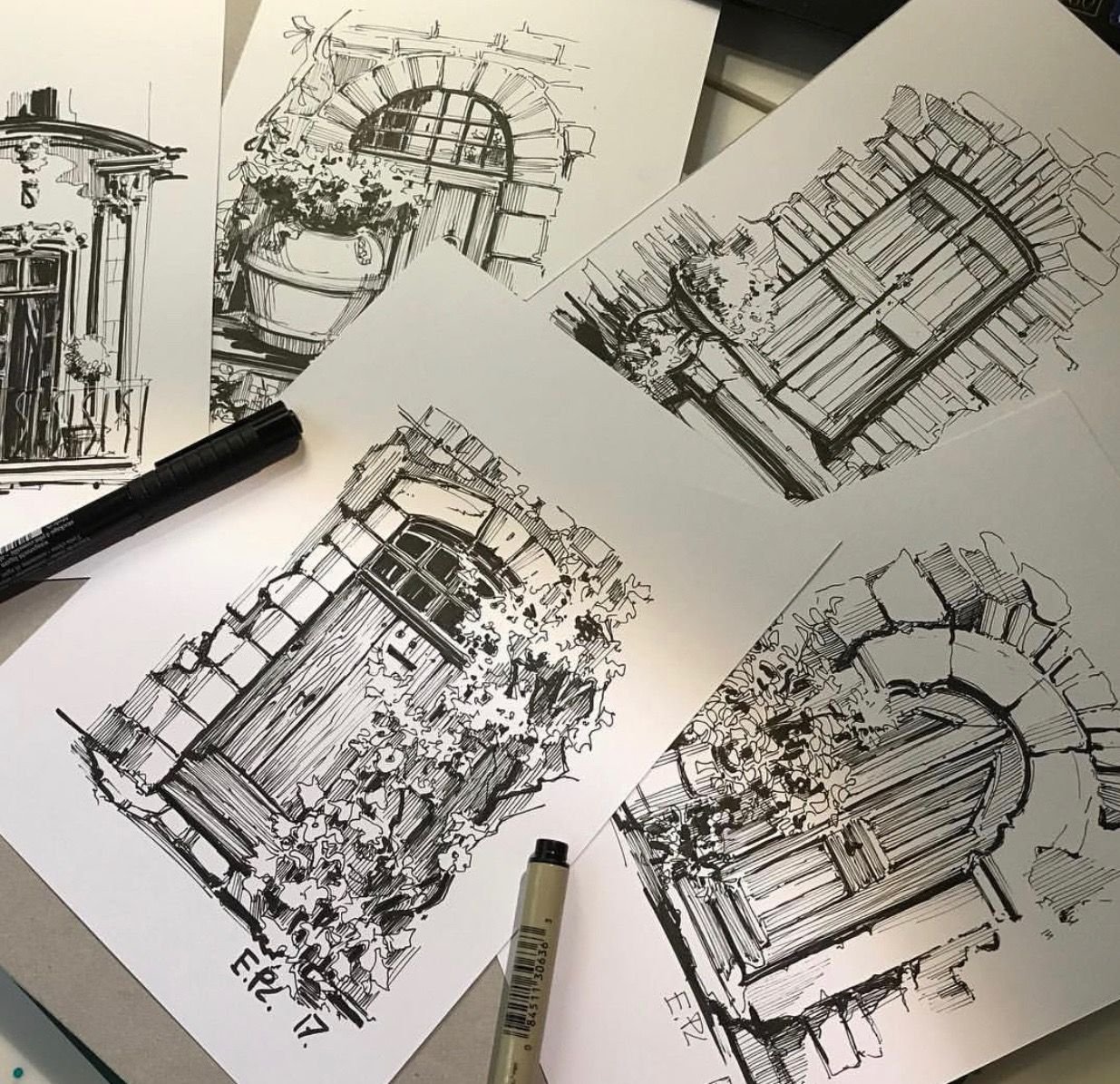 ![Екатерина като Готика архитектурный скетчинг 2020]()