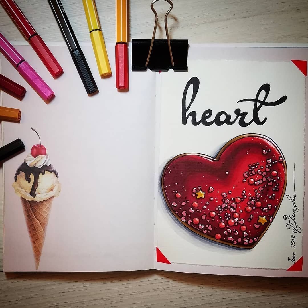 ![Сердце скетчинг маркерами]()