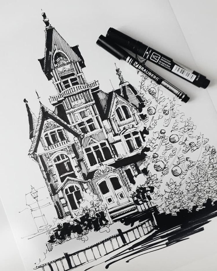 Скетчи черной ручкой