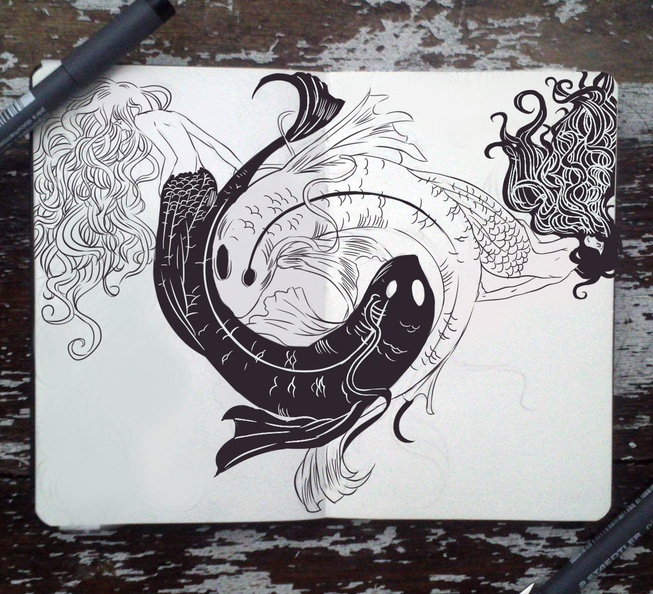 ![Рисунки чёрной гелевой ручкой]()