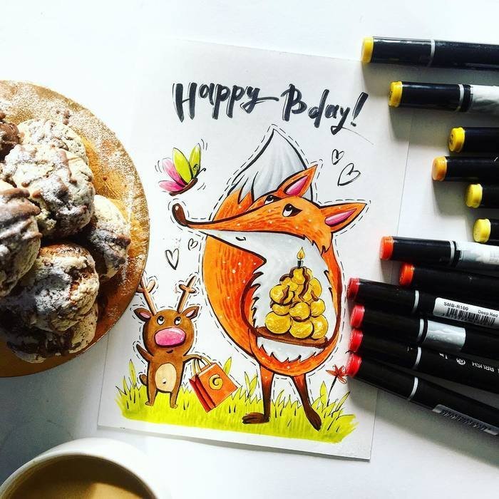 ![Лиса маркерами для скетчинга]()