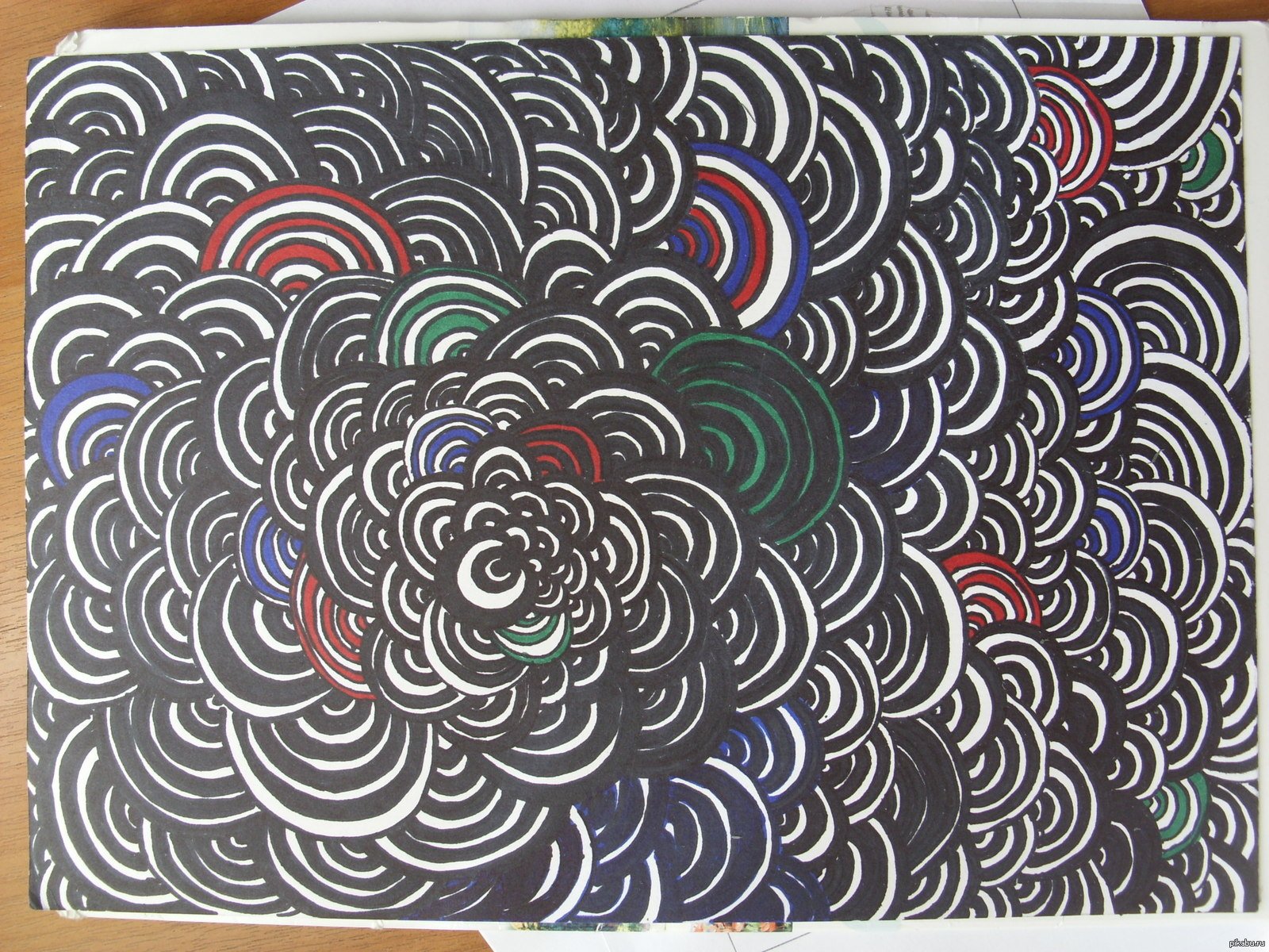 ![Узоры фломастером на бумаге]()