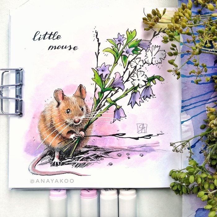 ![Акварельный мышонок]()