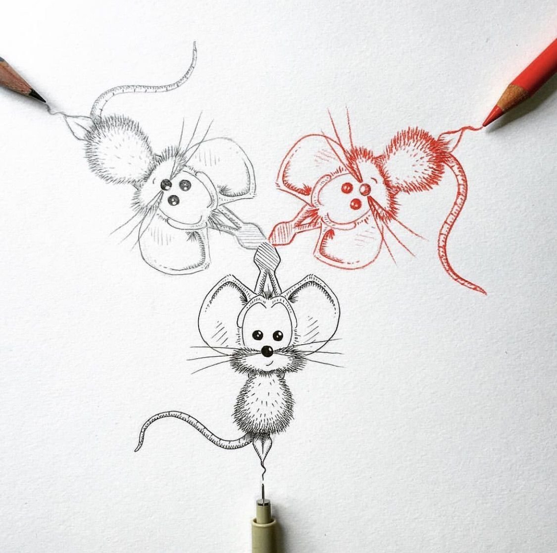 ![Рисунок мышки тушью]()