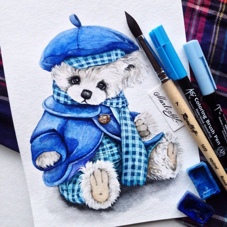 ![Плюшевый мишка акварелью]()