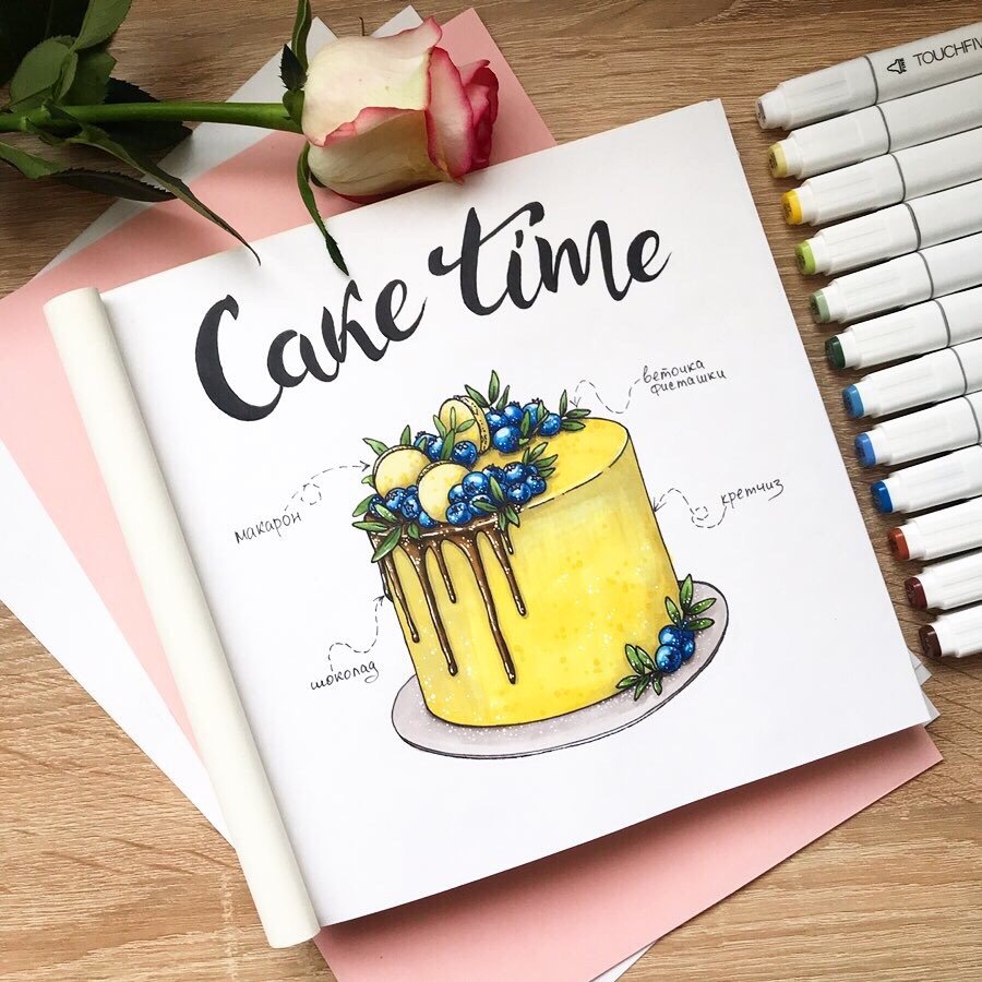 Тортик скетч маркерами