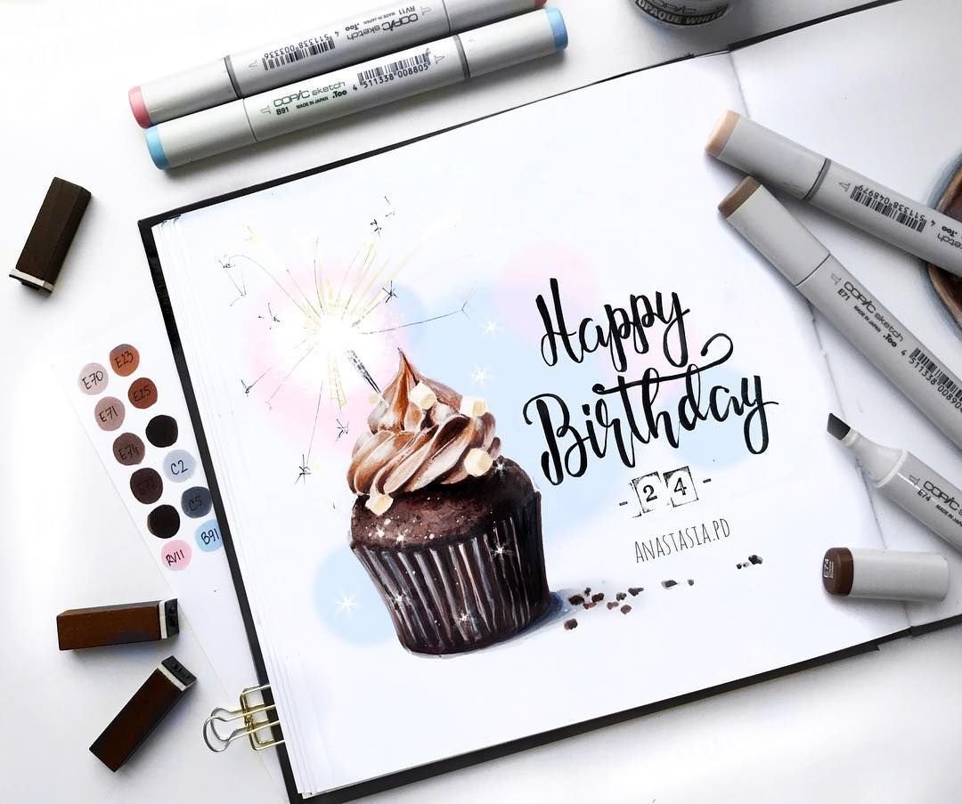 ![Открытка на день рождения маркерами легко]()