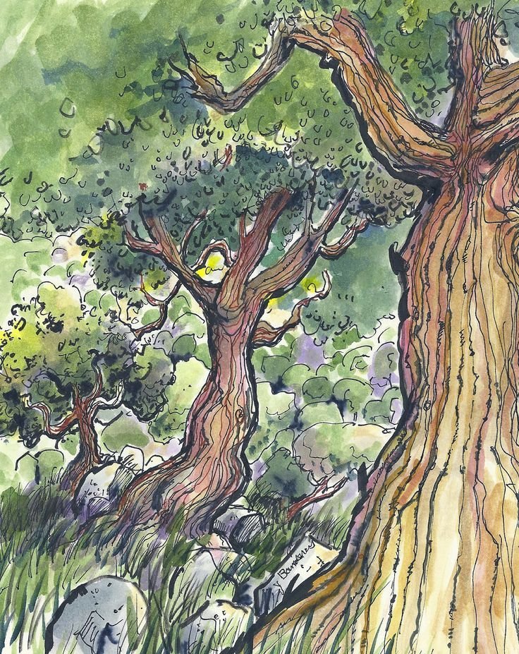 ![Зарисовки деревьев маркером]()