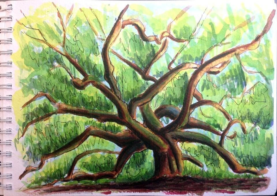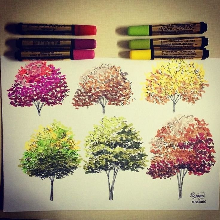 ![Скетчинг маркерами дерево]()