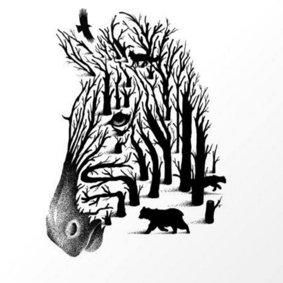 ![Пейзаж черной ручкой]()