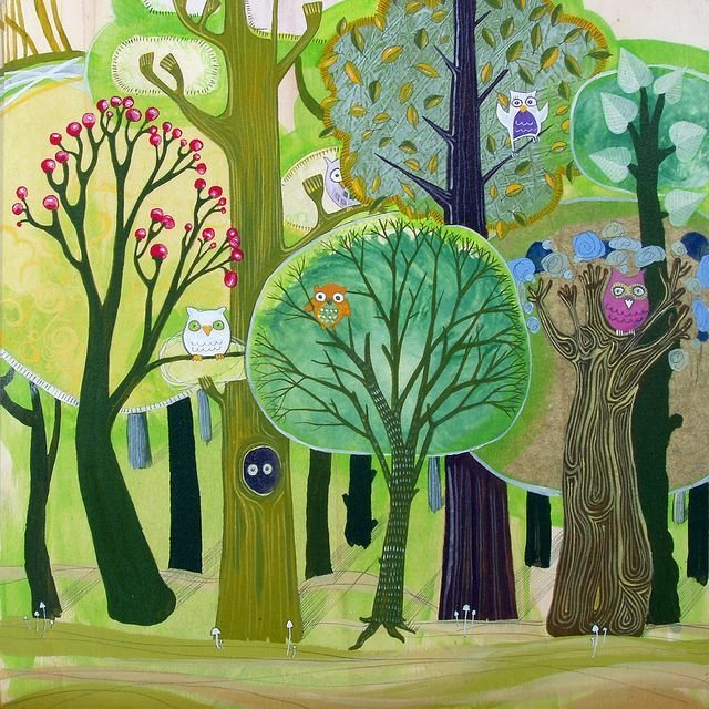 ![Стилизованные деревья в цвете]()