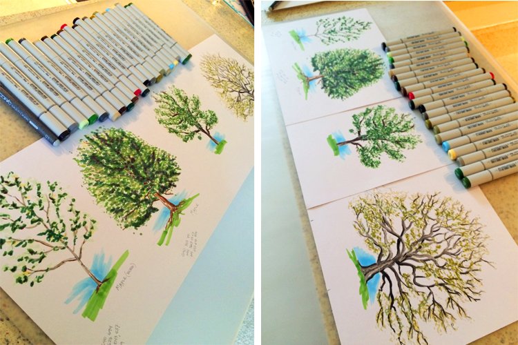 Зарисовки деревьев маркером