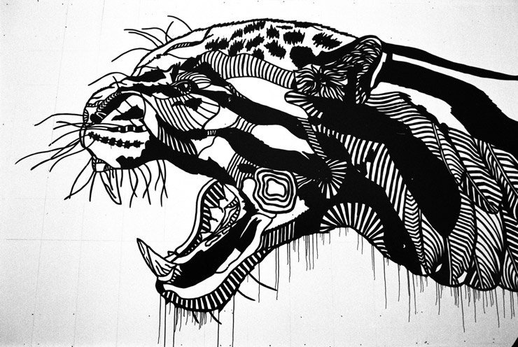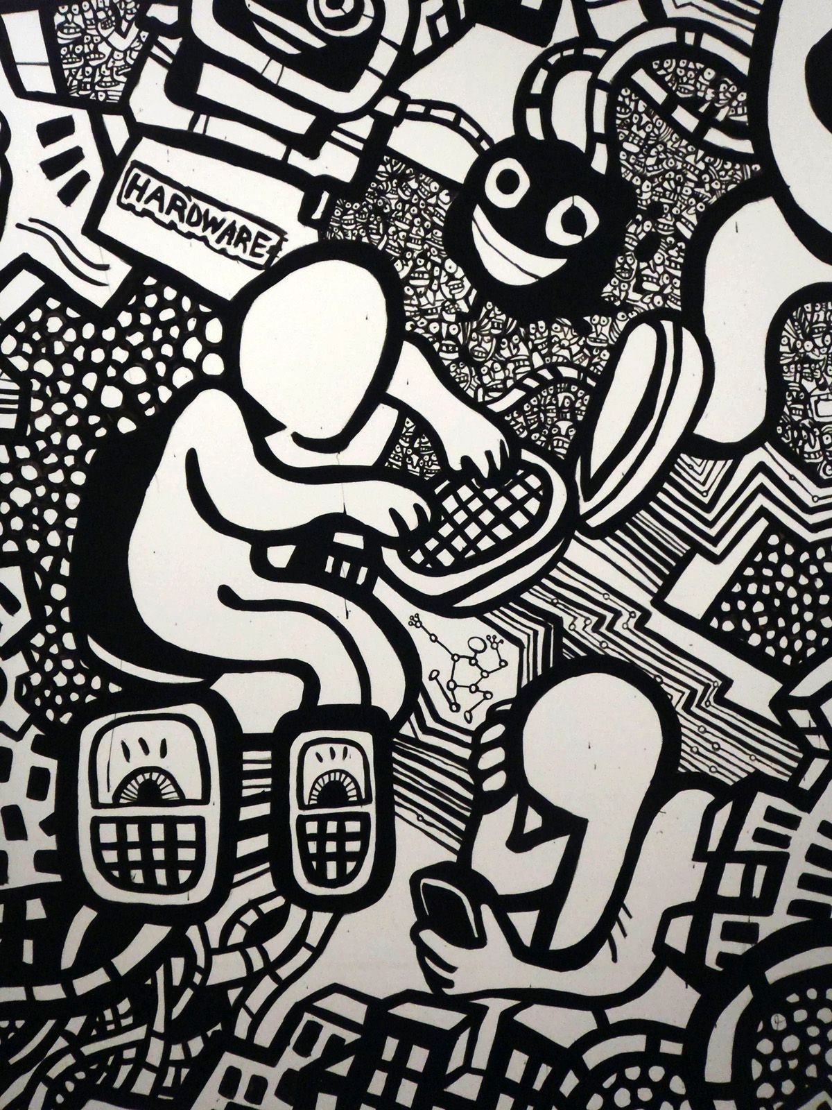 ![Разрисованная черно белая стена]()