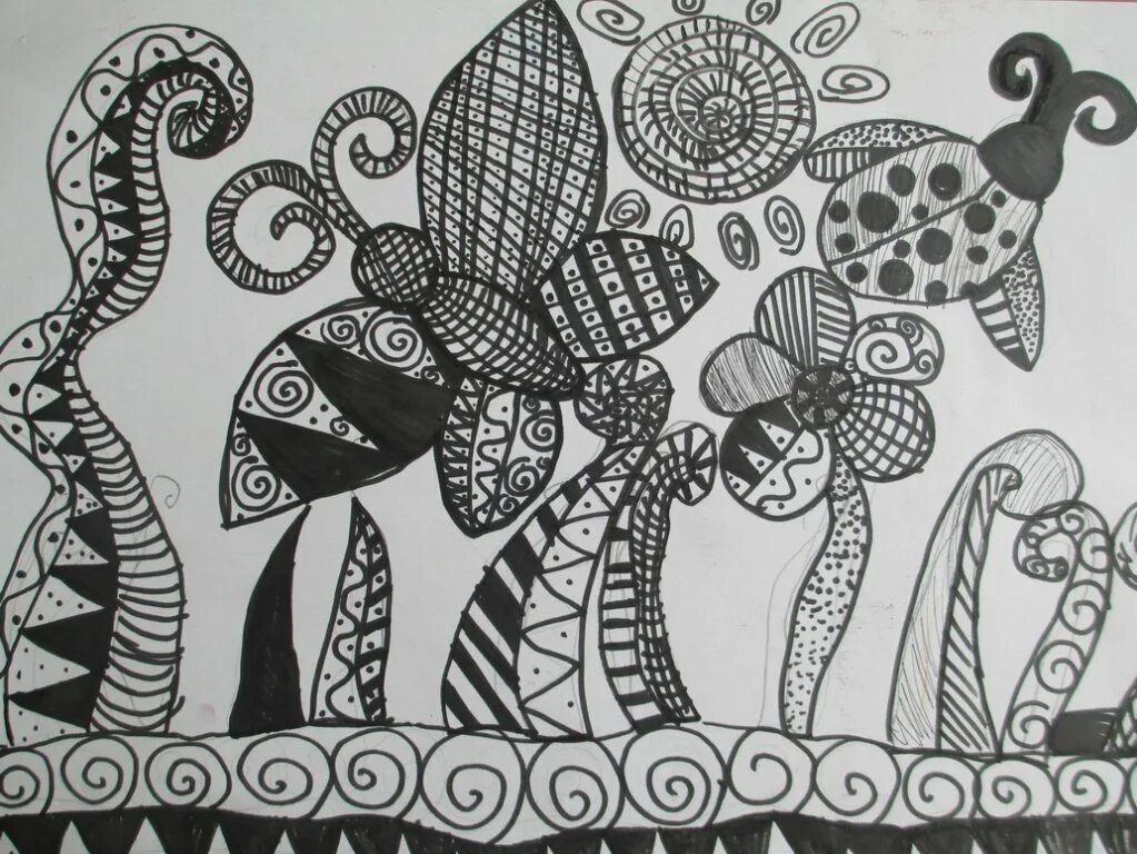 Черно белые картины ручкой