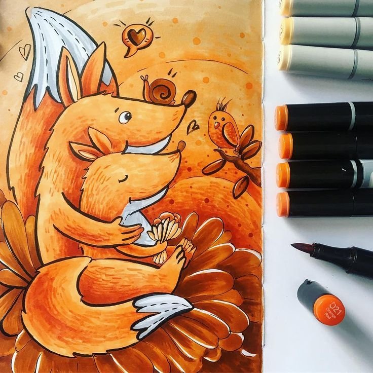 ![Лисичка маркерами]()