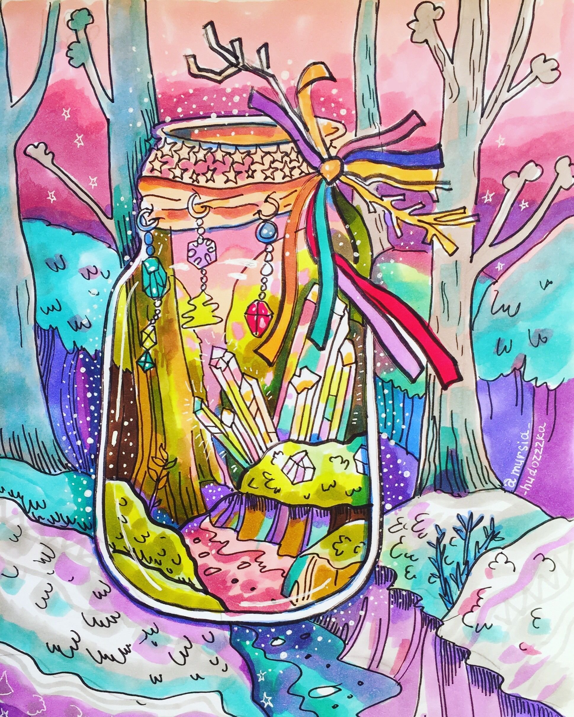 Акварель с гелевой ручкой