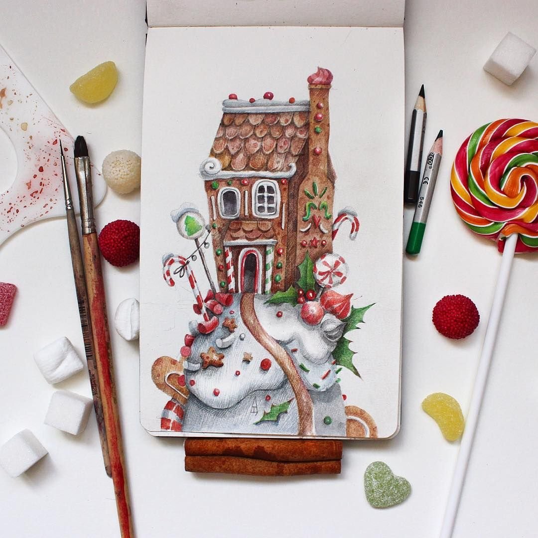 ![Домик скетч маркерами]()