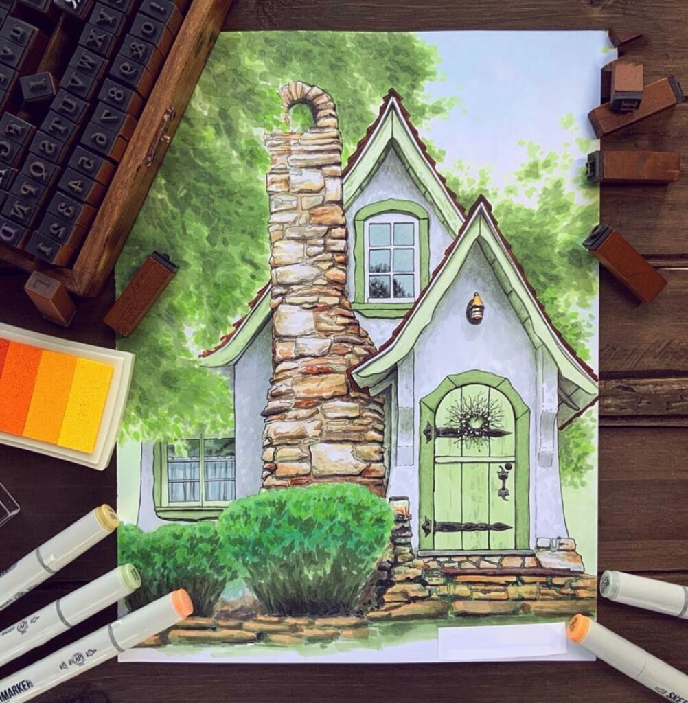 Домик скетч маркерами
