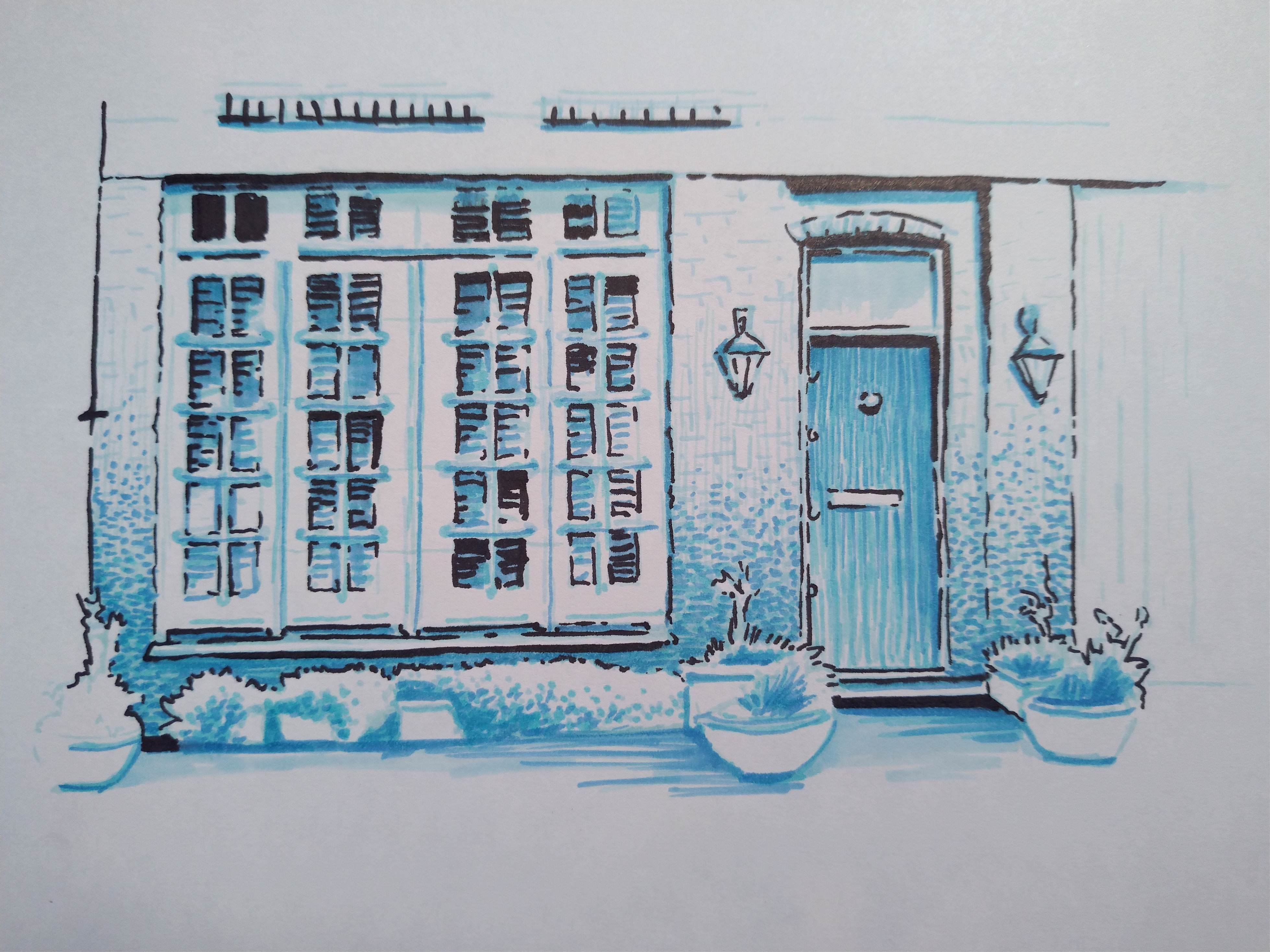 ![Скетчи синим маркером]()