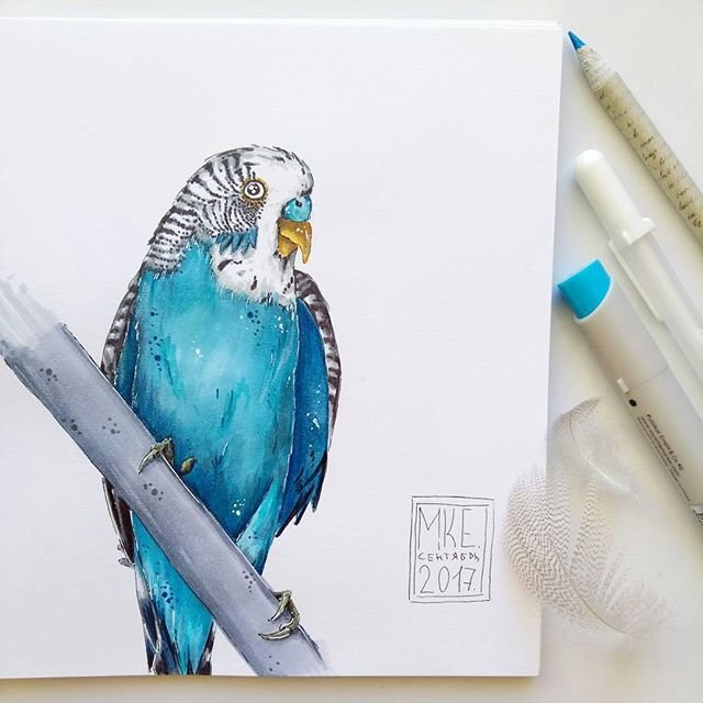 ![Скетчинг волнистый попугай]()