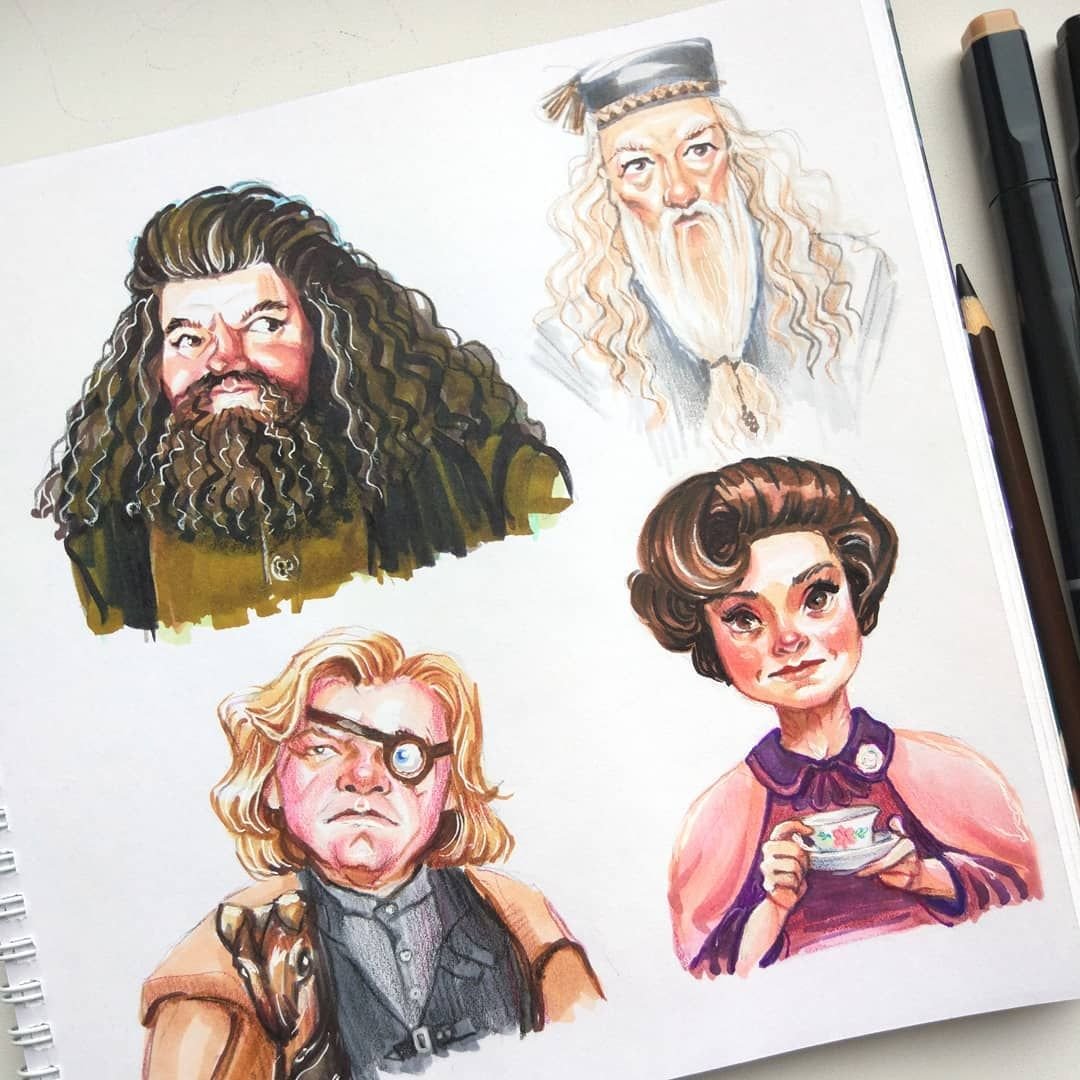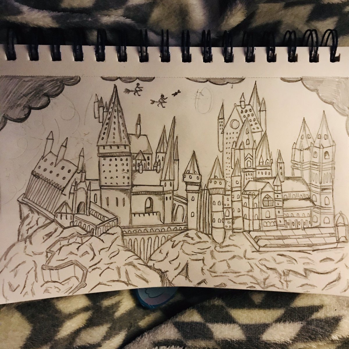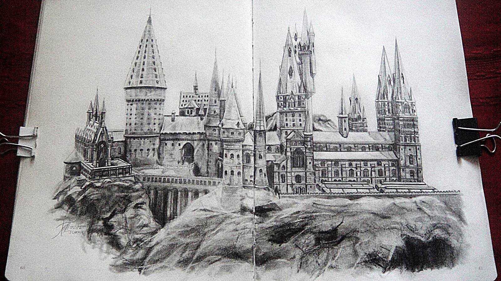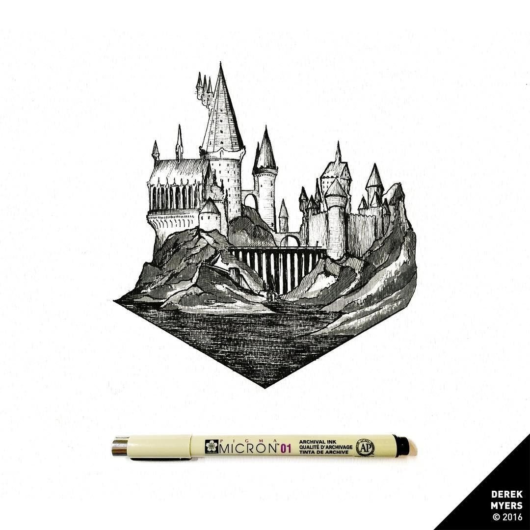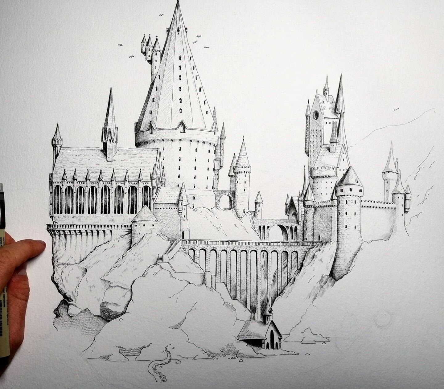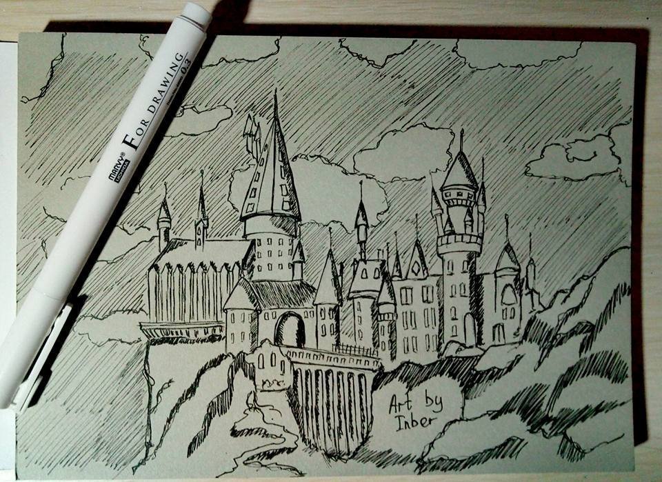 ![Скетчи Гарри Поттер Хогвартс маркером]()