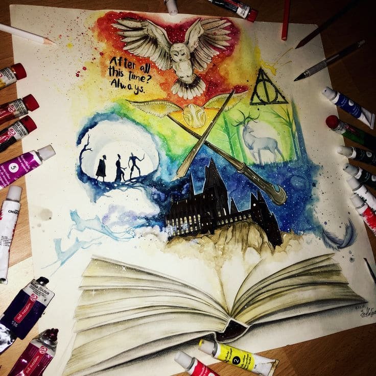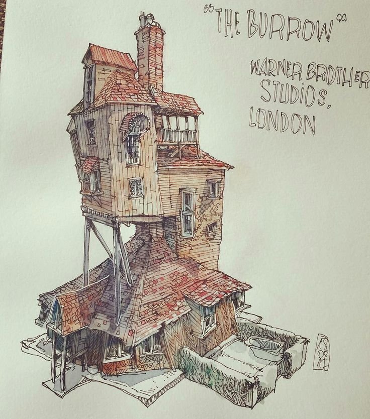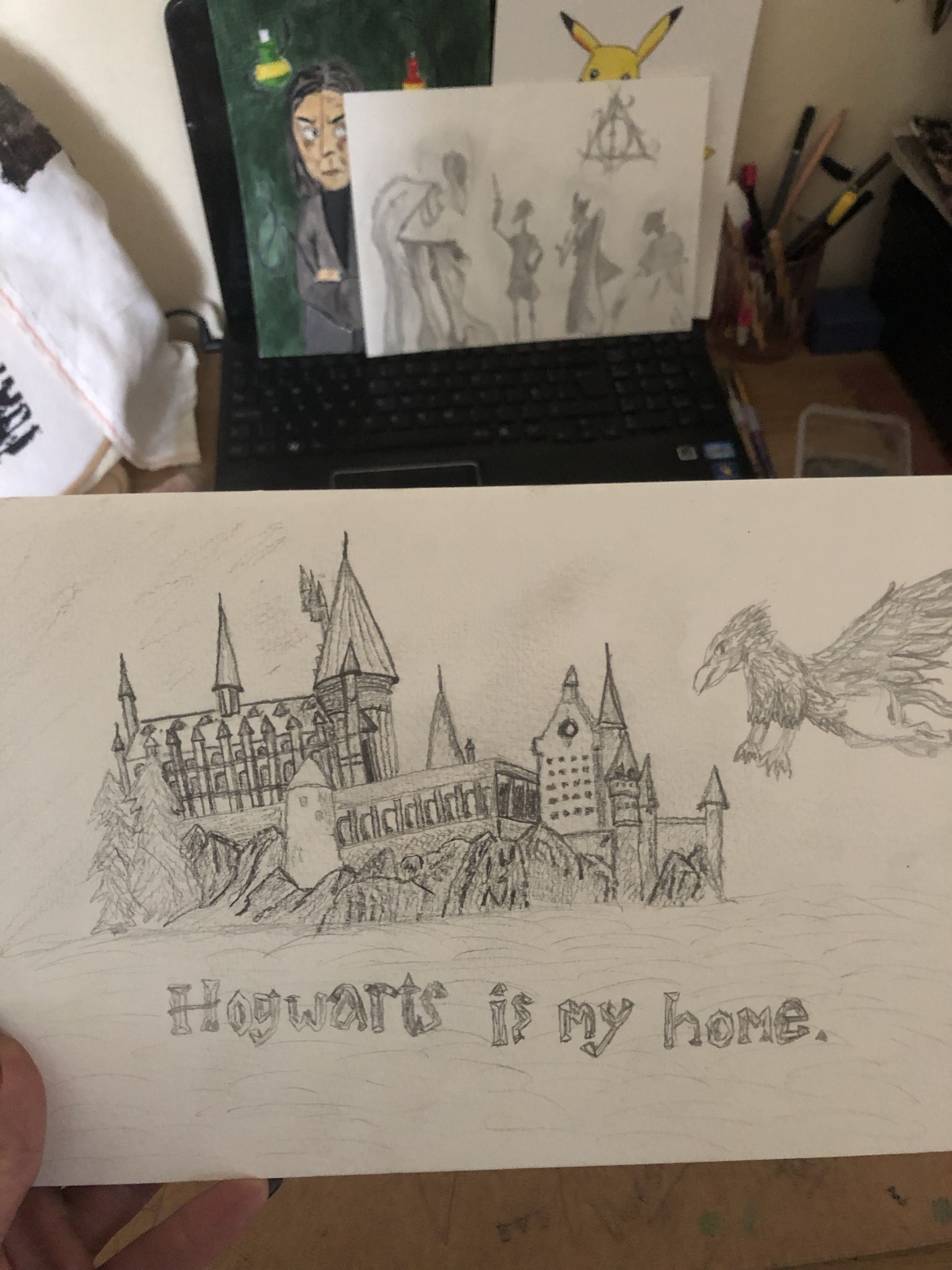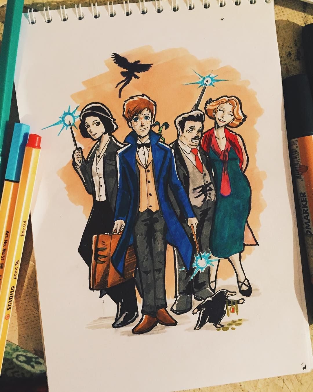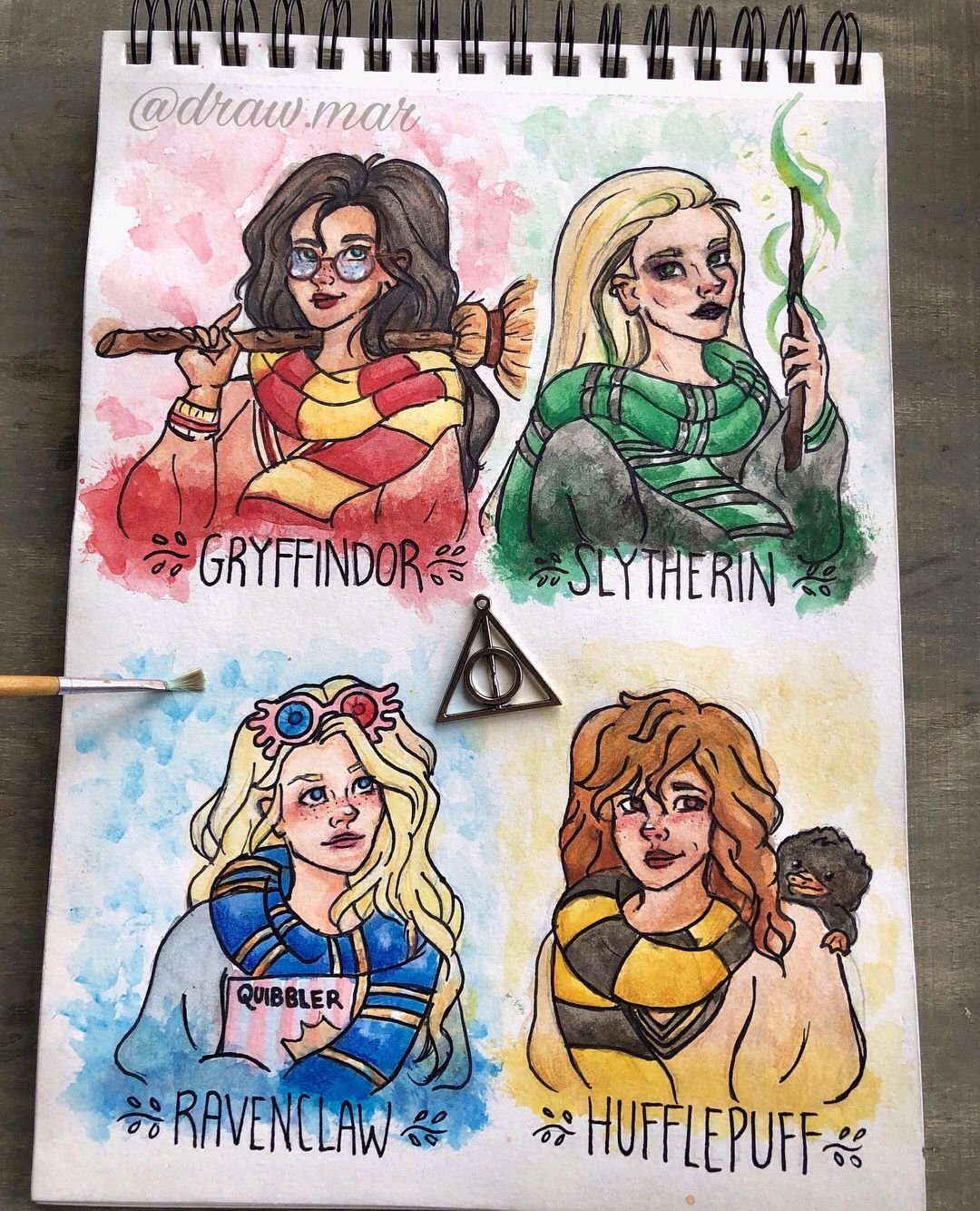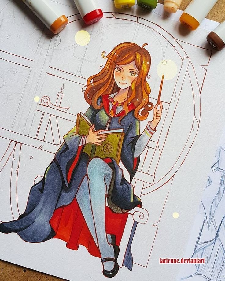![Скетчи Гарри Поттер Хогвартс маркером]()