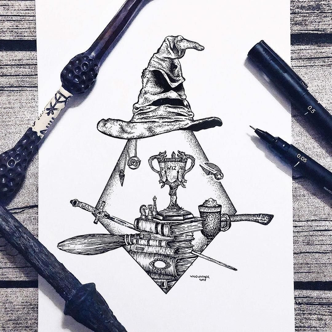 ![Тату Гарри Поттер Хогвартс эскиз]()