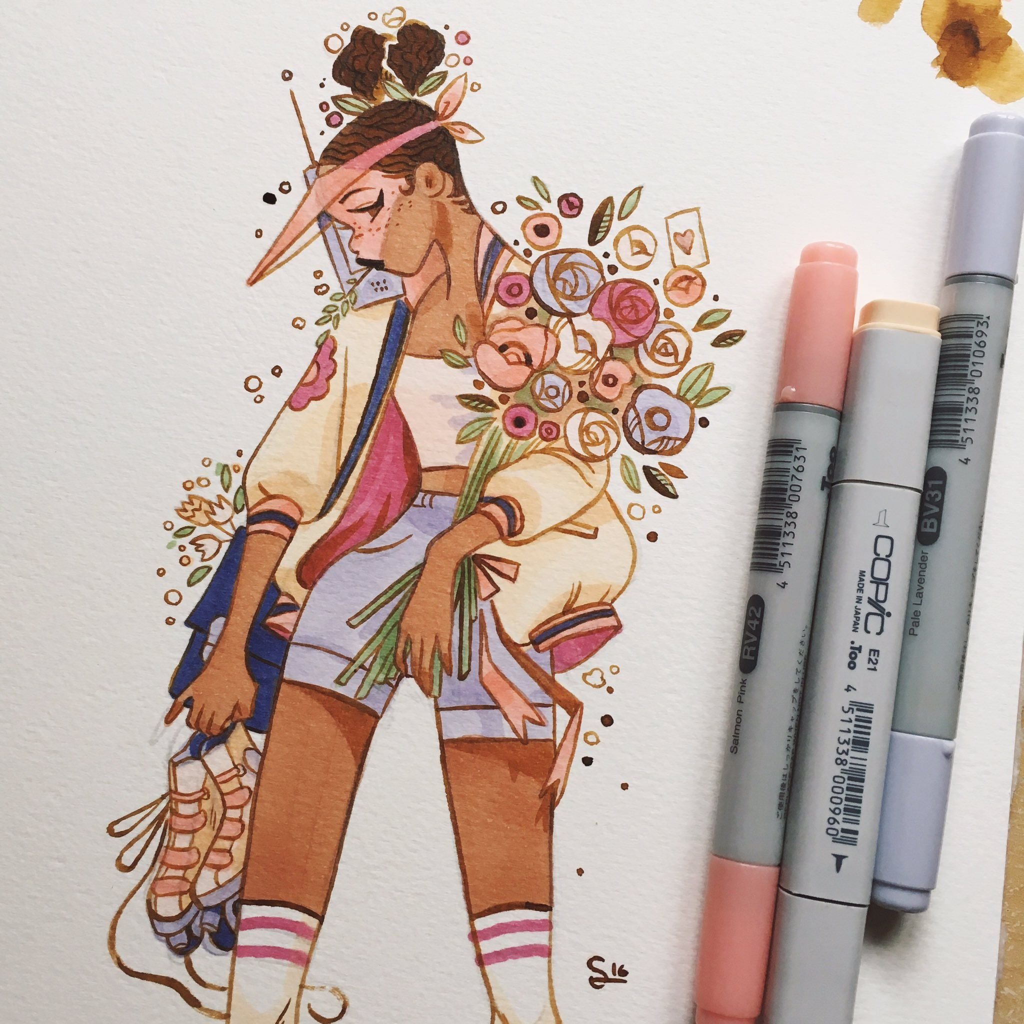 Рисунки девочек маркерами для скетчинга