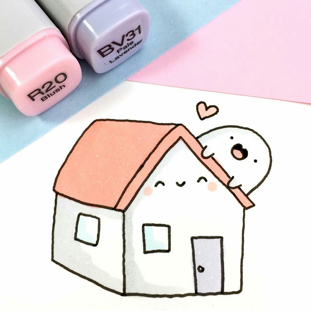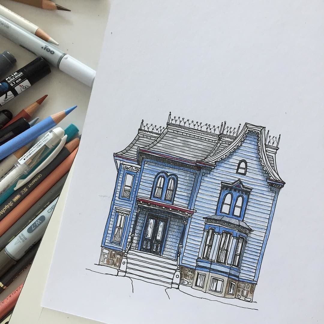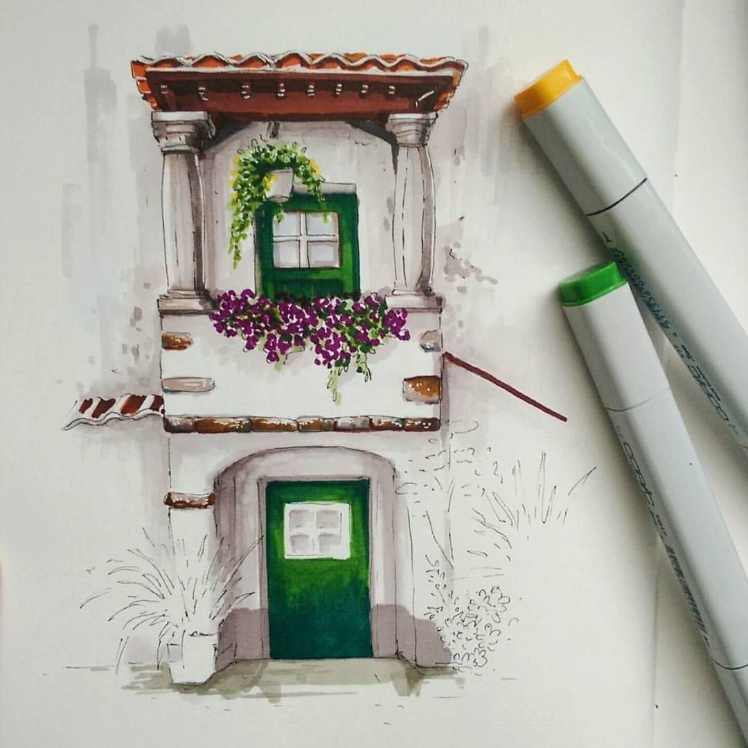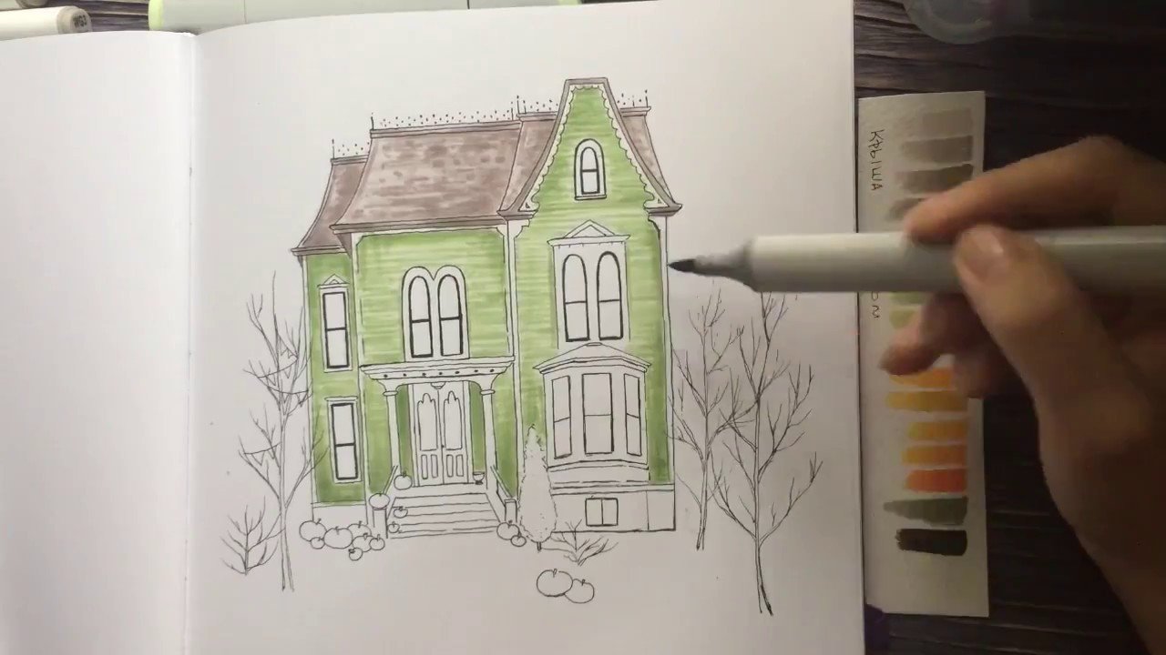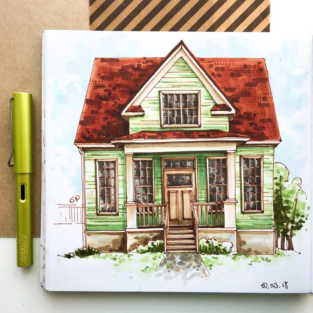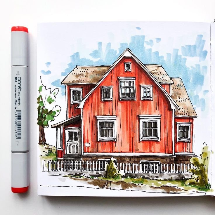 ![Домик скетч маркерами]()