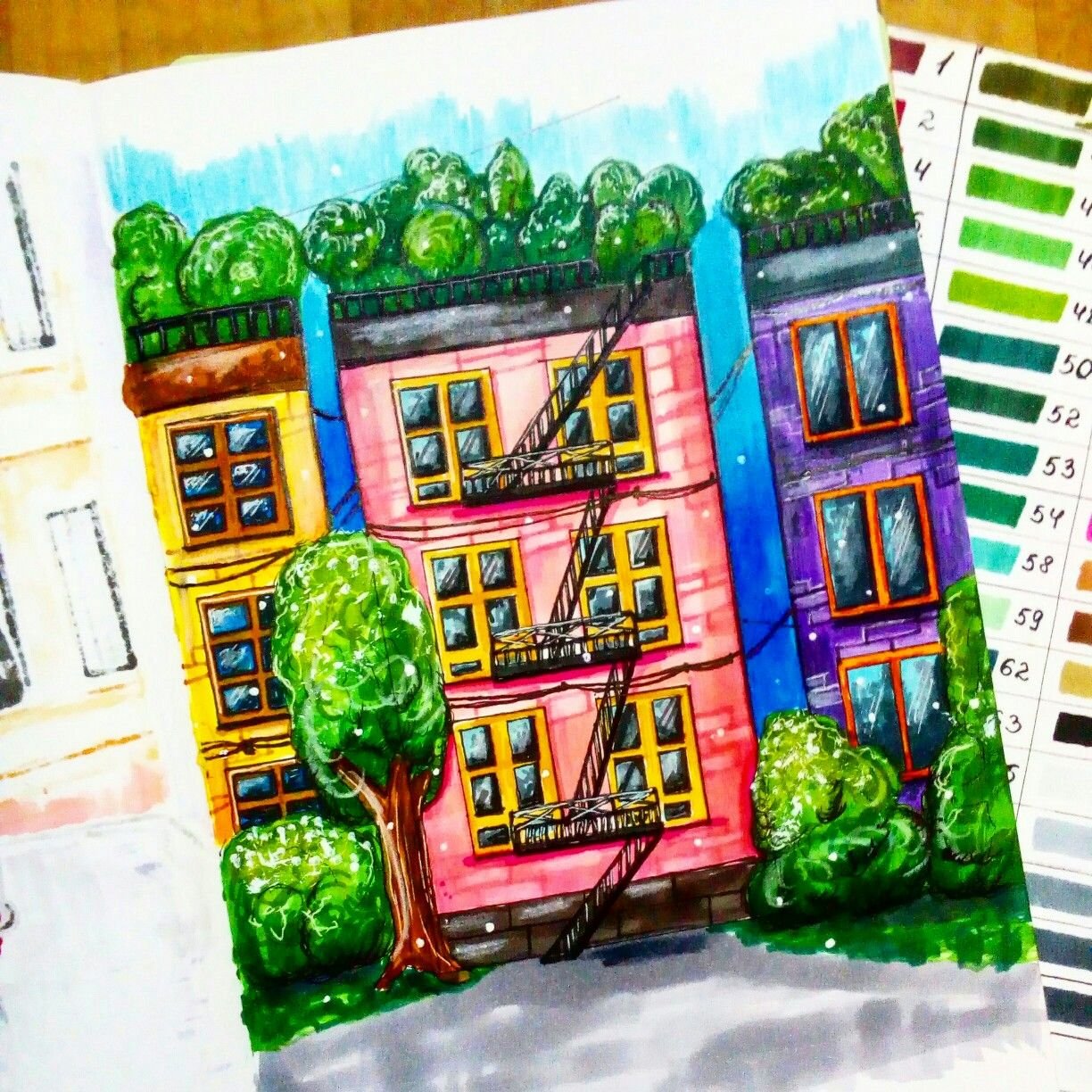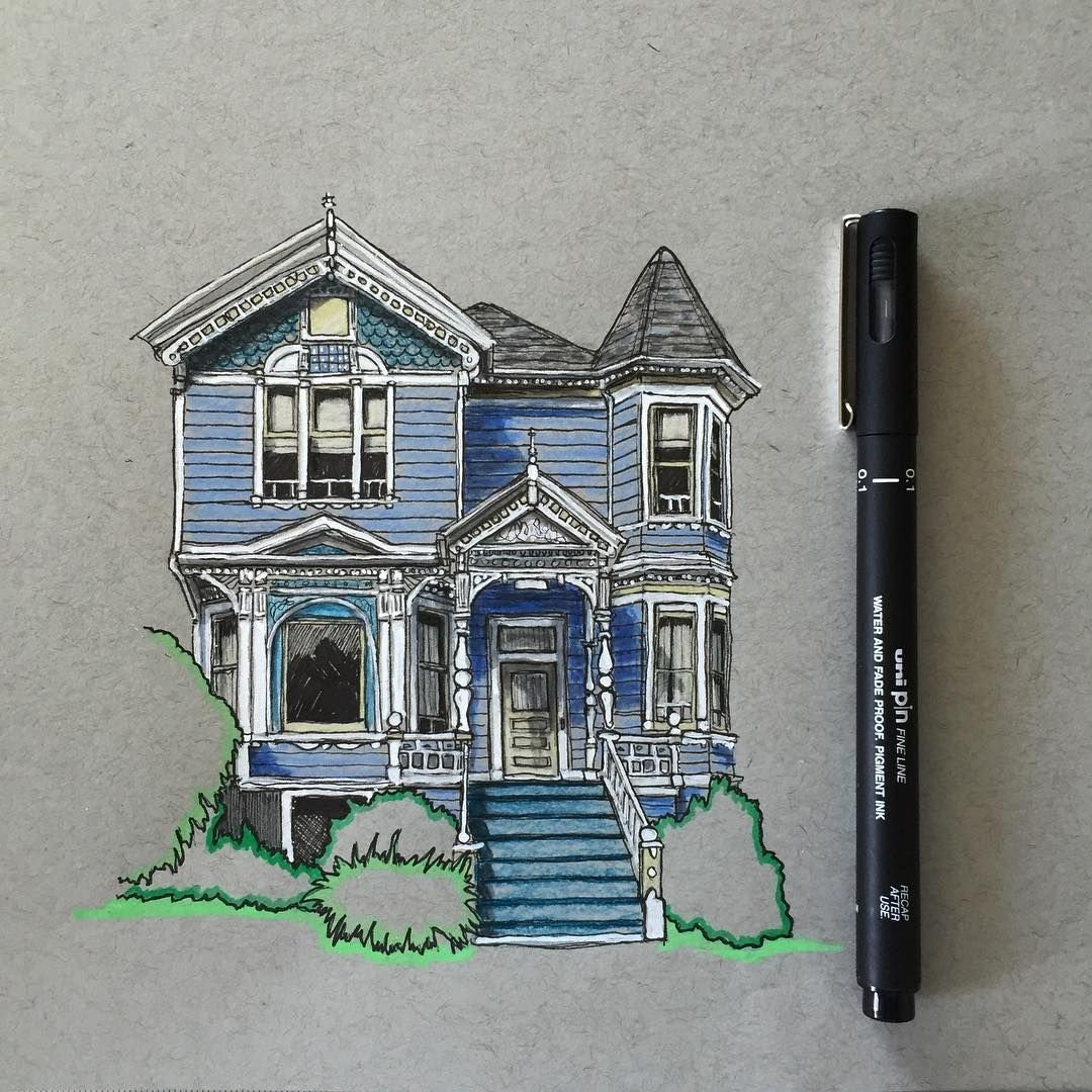 ![Домики маркерами для скетчинга]()