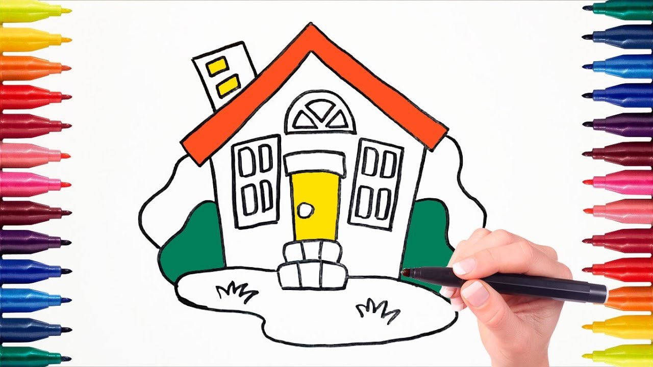 ![Рисование фломастерами домик]()