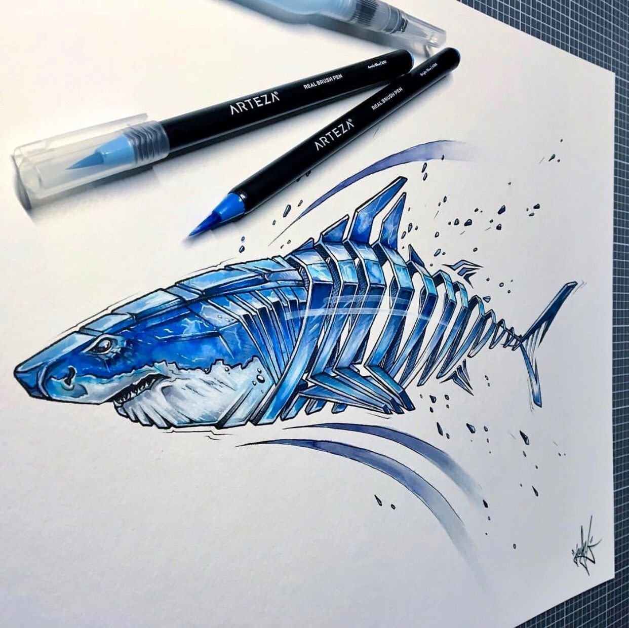 Акула скетч маркерами