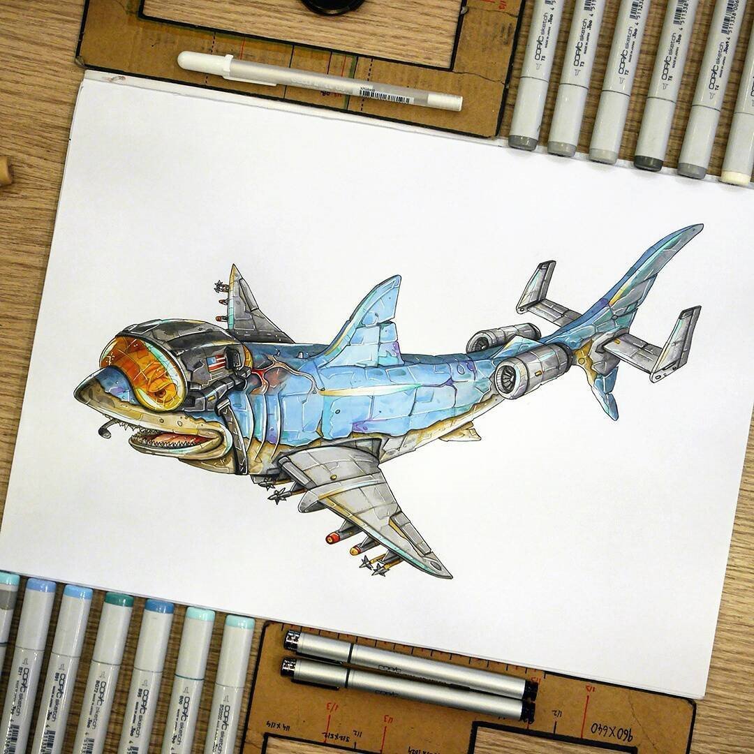 ![Акула скетч маркерами]()