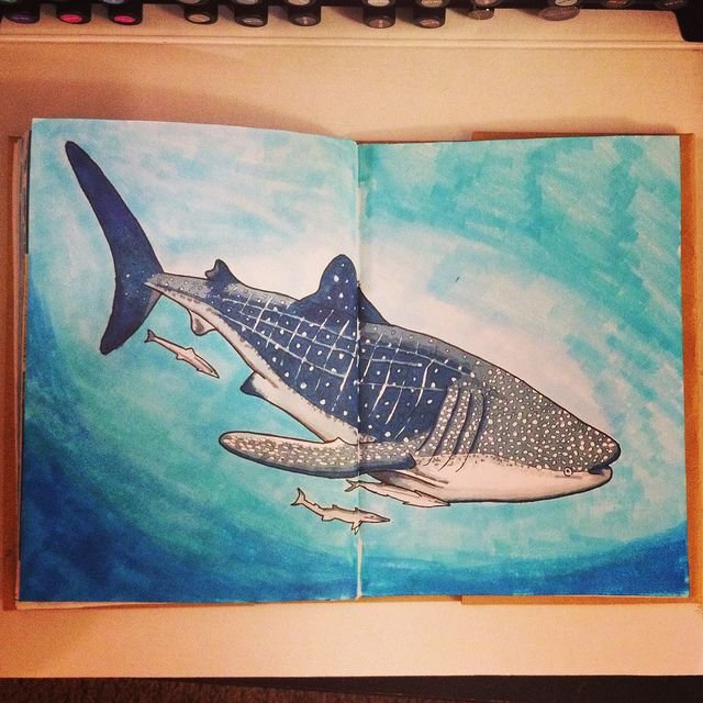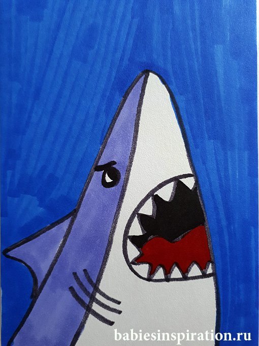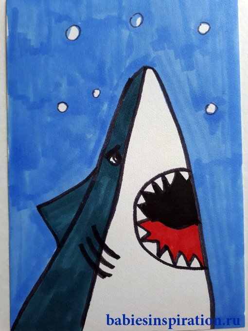 ![Рисунки маркерами акула]()