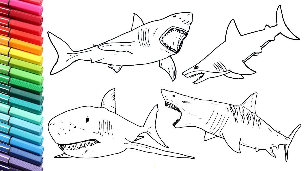 ![Акула раскраска]()