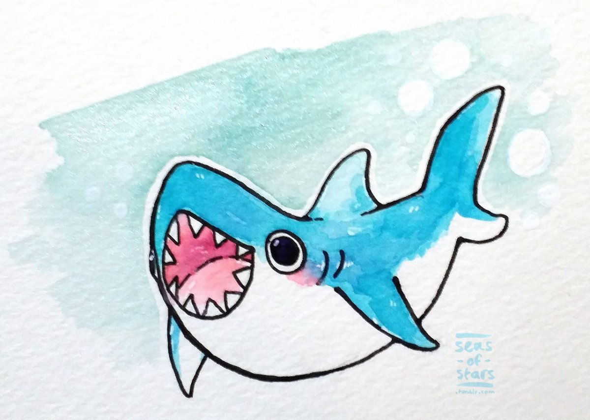 ![Милые акулы для срисовки]()