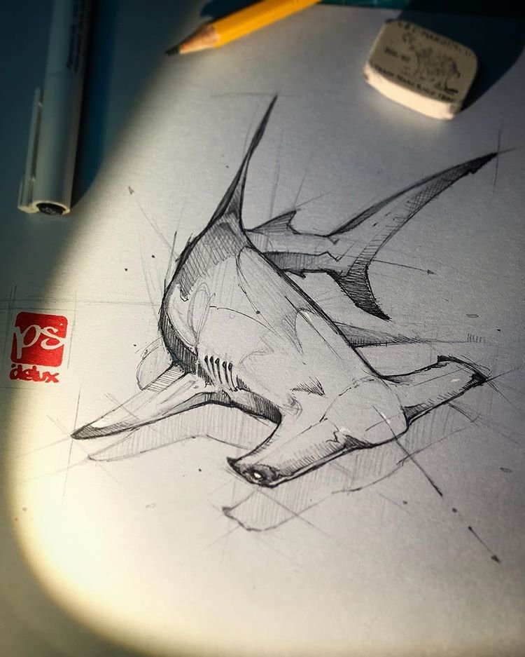 ![Акула скетчинг]()