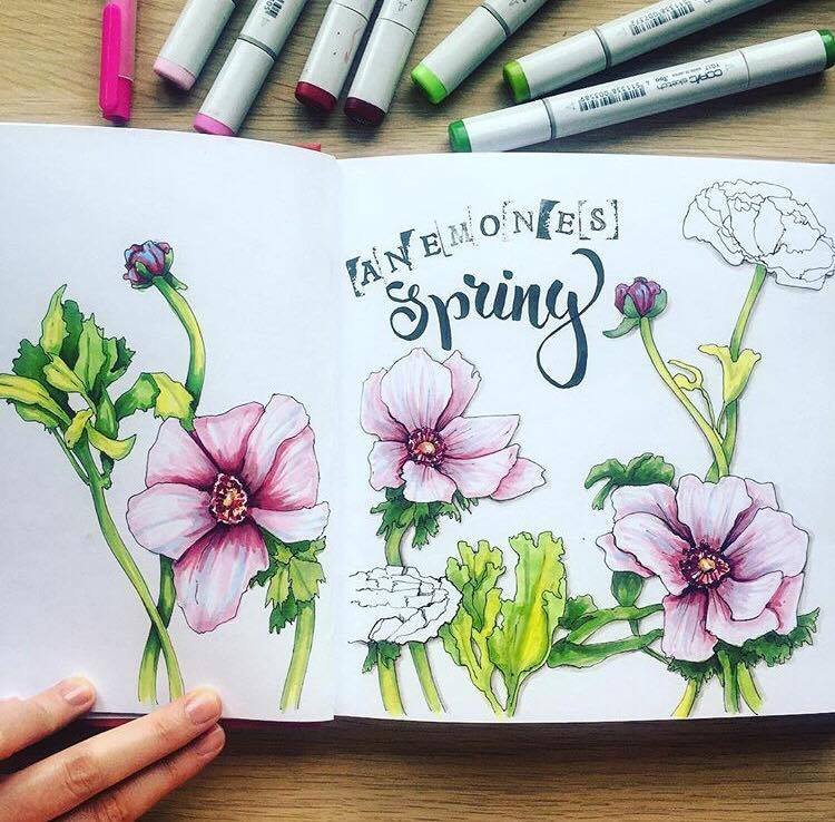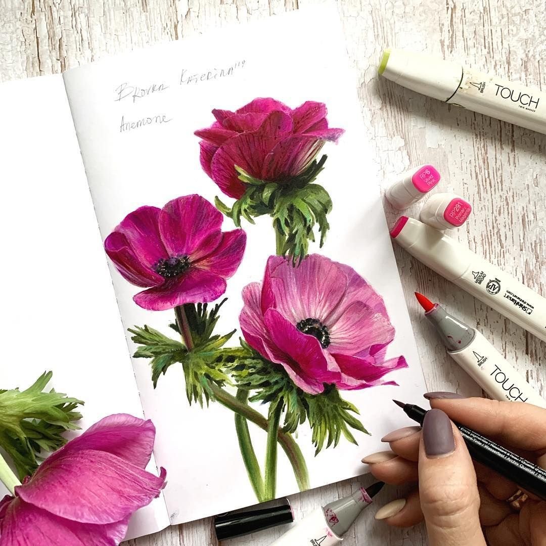 Цветы скетч маркерами