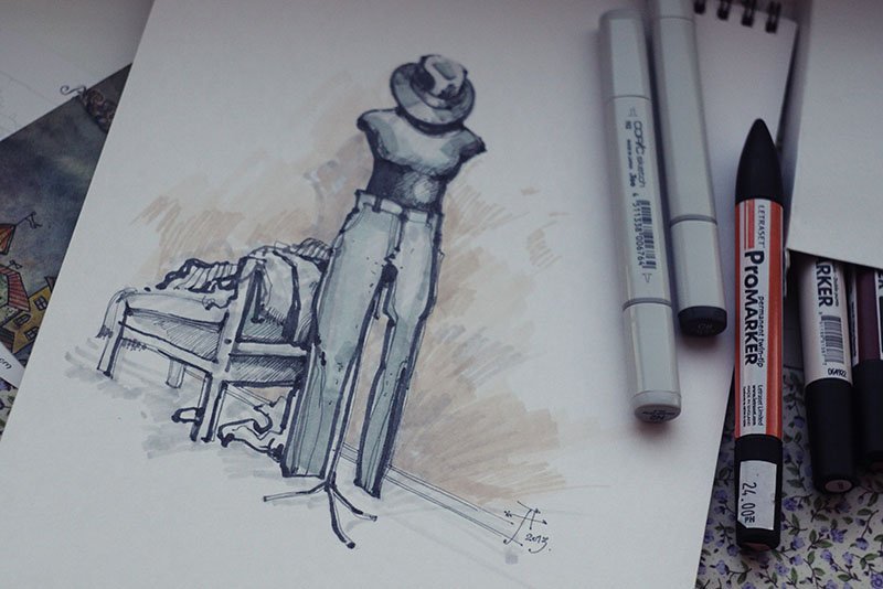 Скетчи предметов маркерами