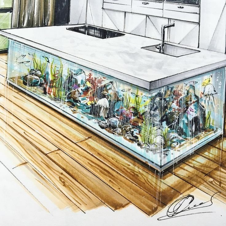 ![Аквариум рисунок маркерами]()