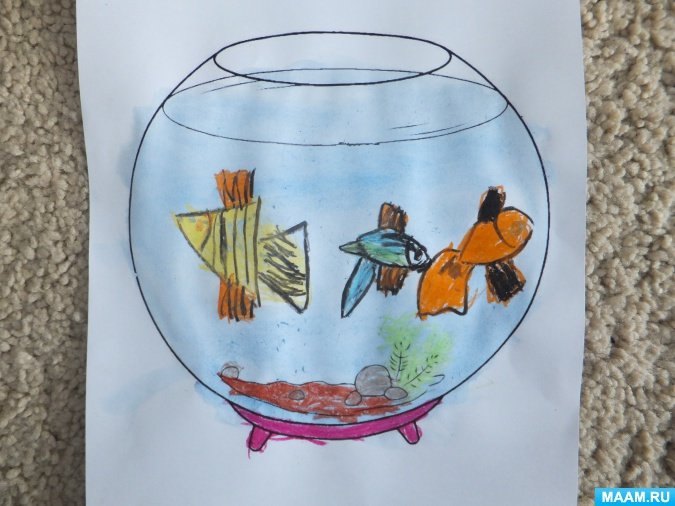 Рисование рыбки в аквариуме средняя группа