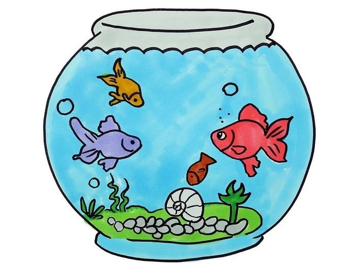 ![Аквариум с рыбками рисунок]()