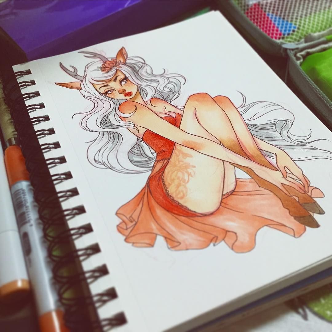![Олень скетч маркерами]()