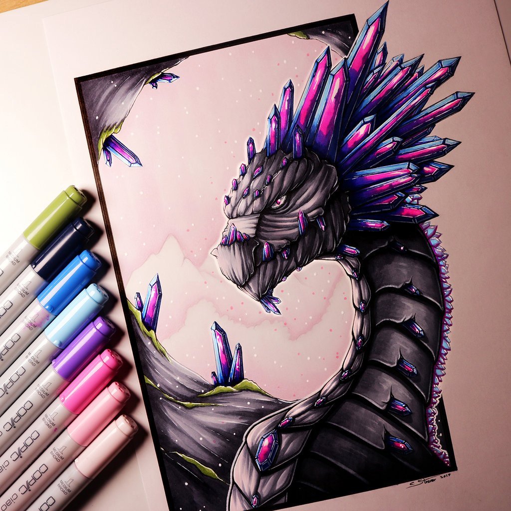 Дракон скетч маркерами
